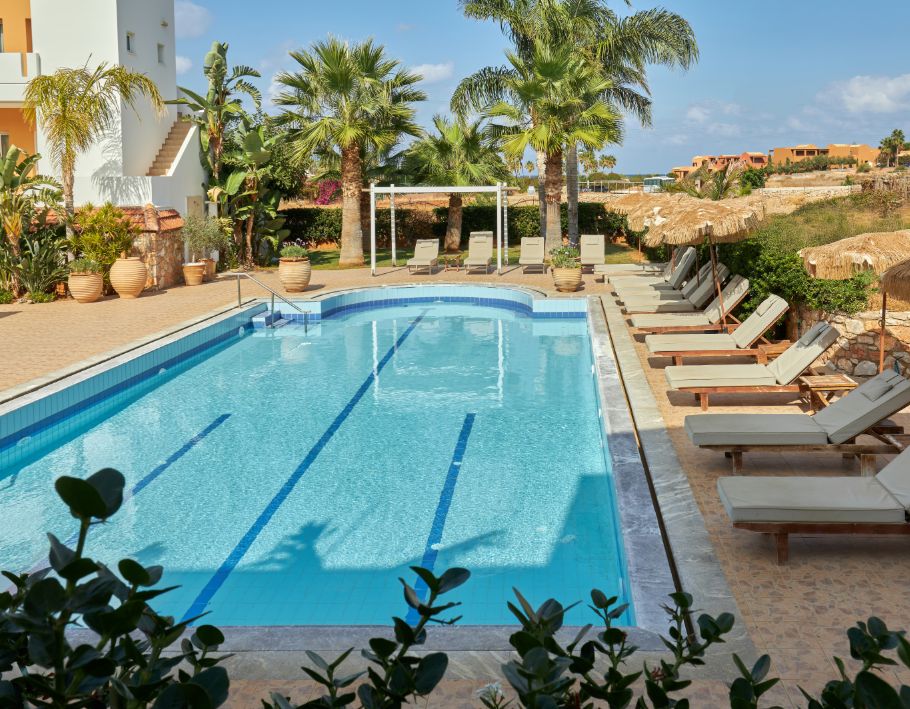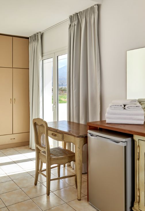 The Superior Family rooms are located in the main building, are modernly styled, and complemented by inspiring views of the Gulf of Malia. The full glass door opens out to the furnished private balcony.